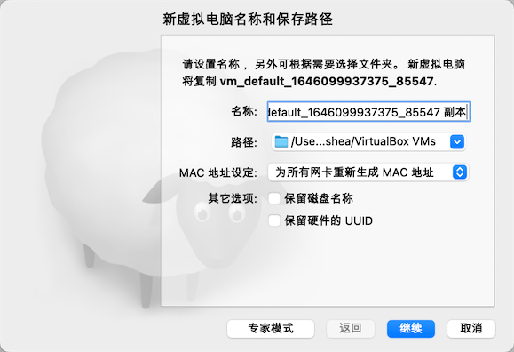 在 VitrualBox 界面将虚拟机关机后,右键复制,选择保存的路径,需要注意: