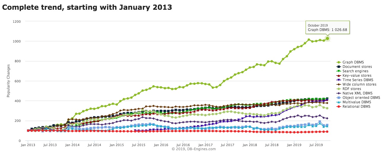 可以明显的看出,图数据库正获得越来越多的关注。