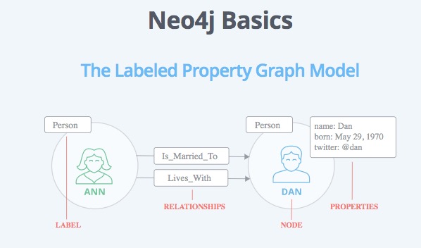 - 节点和关系上的属性,存储为键值对的形式