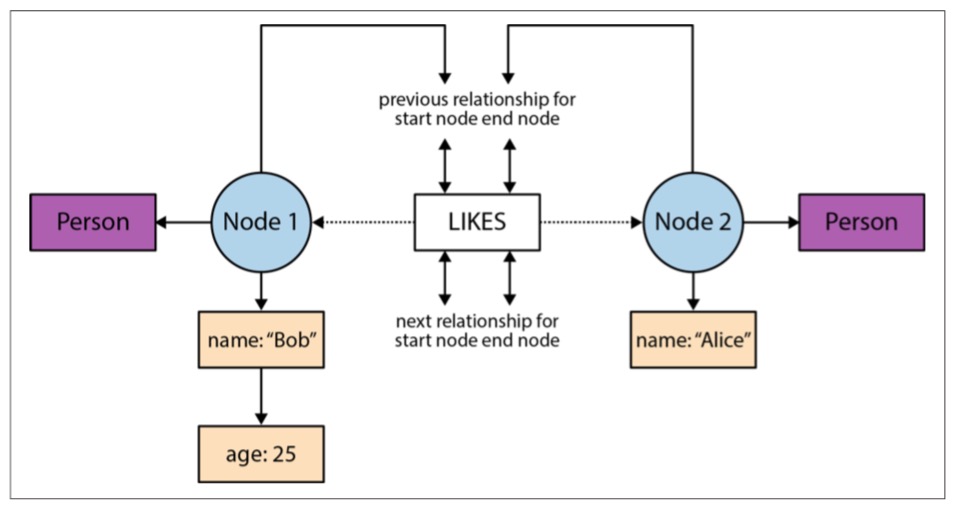 下图展示了Neo4j图数据库对数据的物理存储模式: